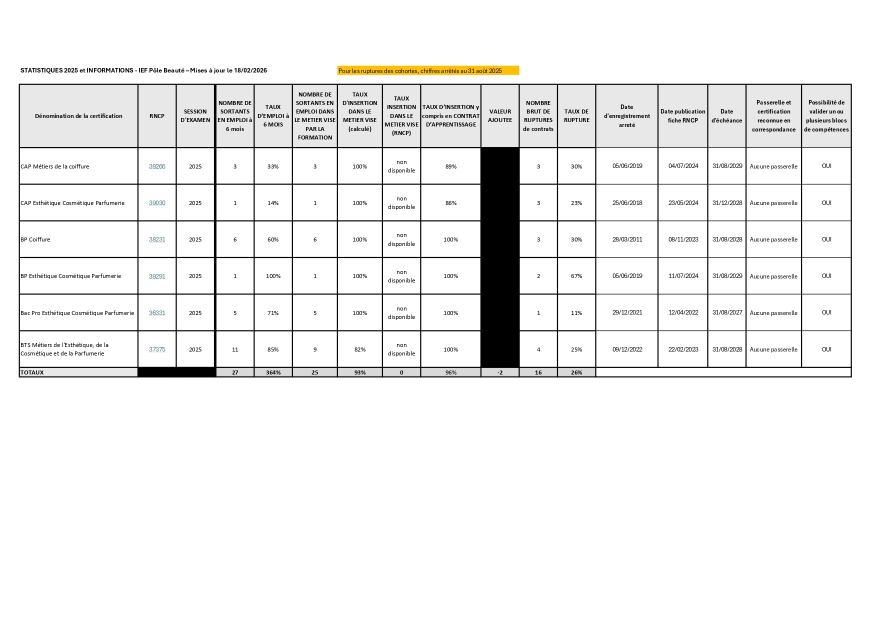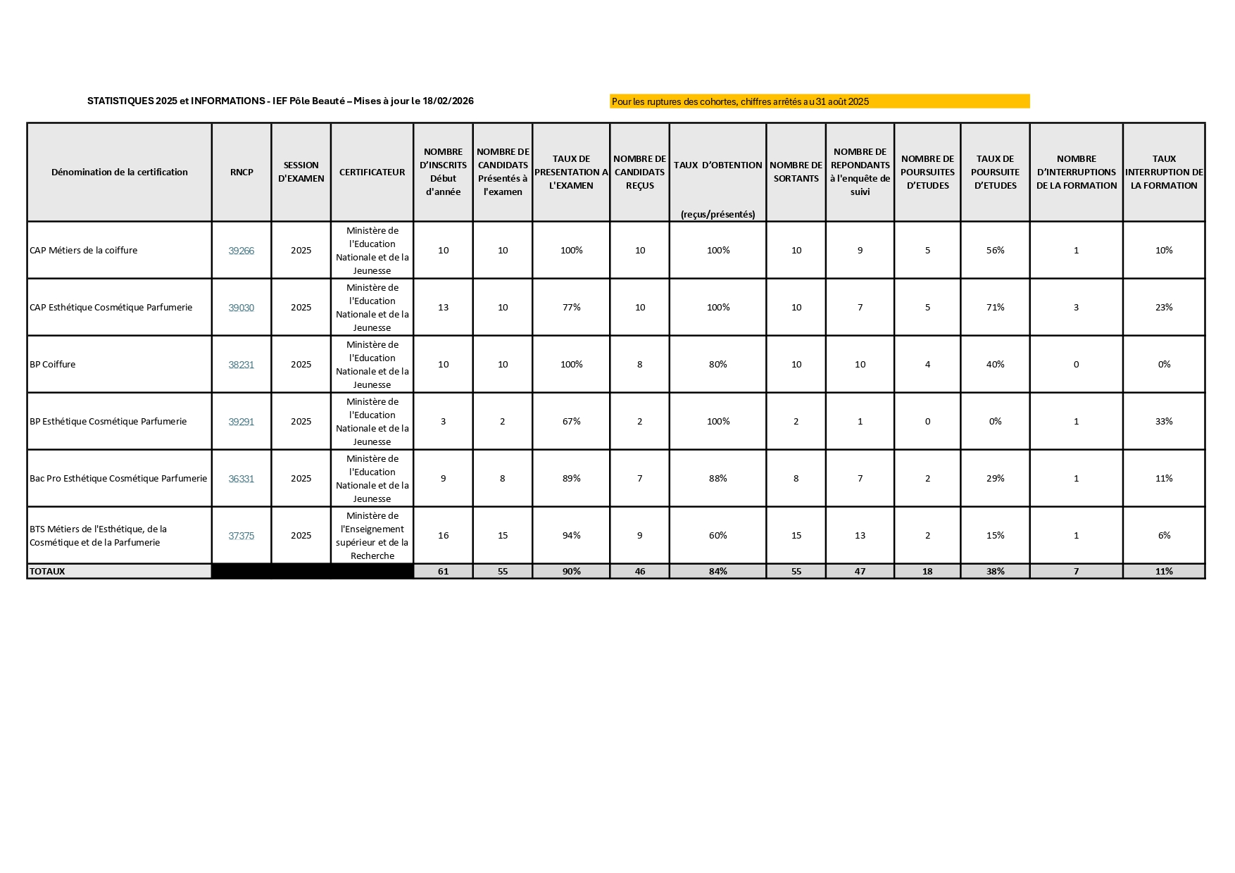 Le détail des chiffres relatifs à nos formations est disponible sur demande.